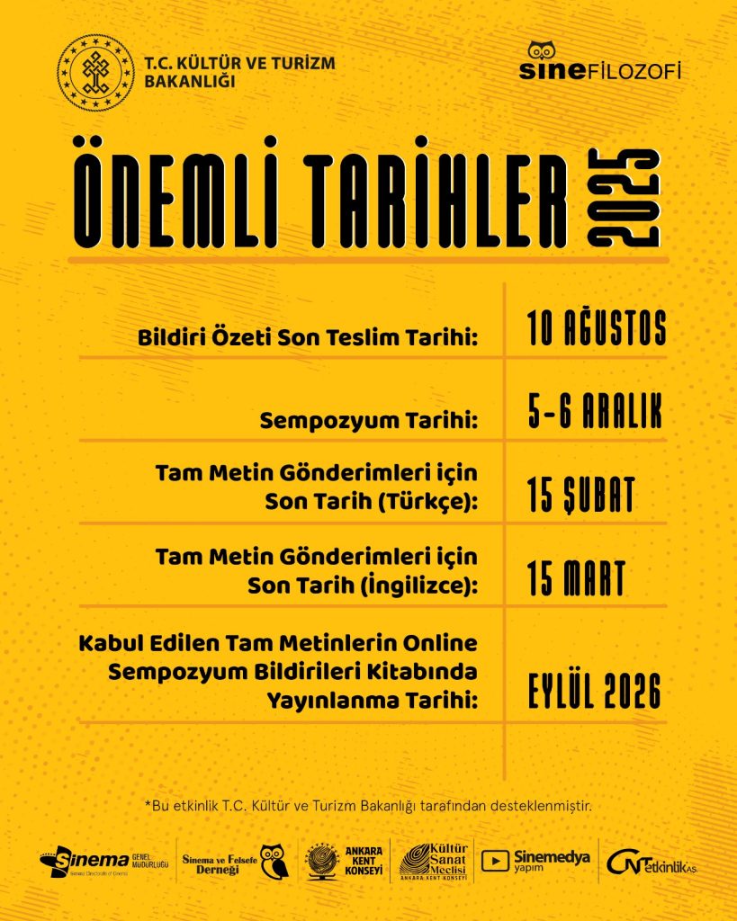 Bugün sizleri Ankara’da 5 -6 Aralık 2025 tarihinde, SineFilozofi Dergisi ve Sinema ve Felsefe Derneği işbirliğinde düzenlenen, düşünen, üreten ve mevcut dünyaya alan açan herkesi bir araya getirmeyi amaçlayan 8. Uluslararası Sinema ve Felsefe Sempozyumu’na davet etmenin mutluluğunu yaşıyoruz.