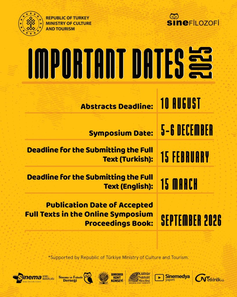 As of this year, abstracts must be submitted via our website (https://www.sinefilozofi.com/en/symposium-abstract-form/) within the specified deadlines.